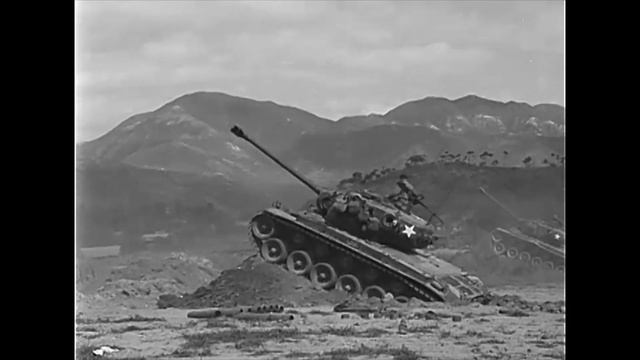 M26 Pershing tanks in the indirect fire role in Korea on August 24th 1950