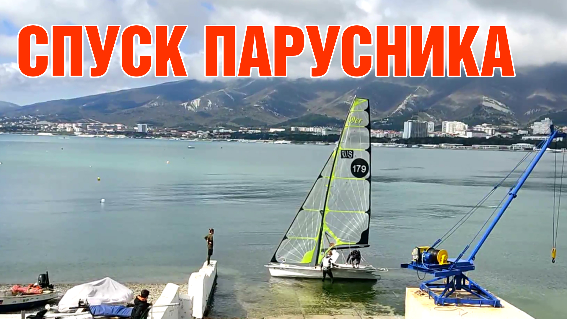 Два небольших спортивных парусника готовят к спуску на воду. Одним парусником управляют два яхтсмена и выходят в море. #геленджик #геленджик2021 #парусник #спортивныйпарусник #регата #жизньнаморе