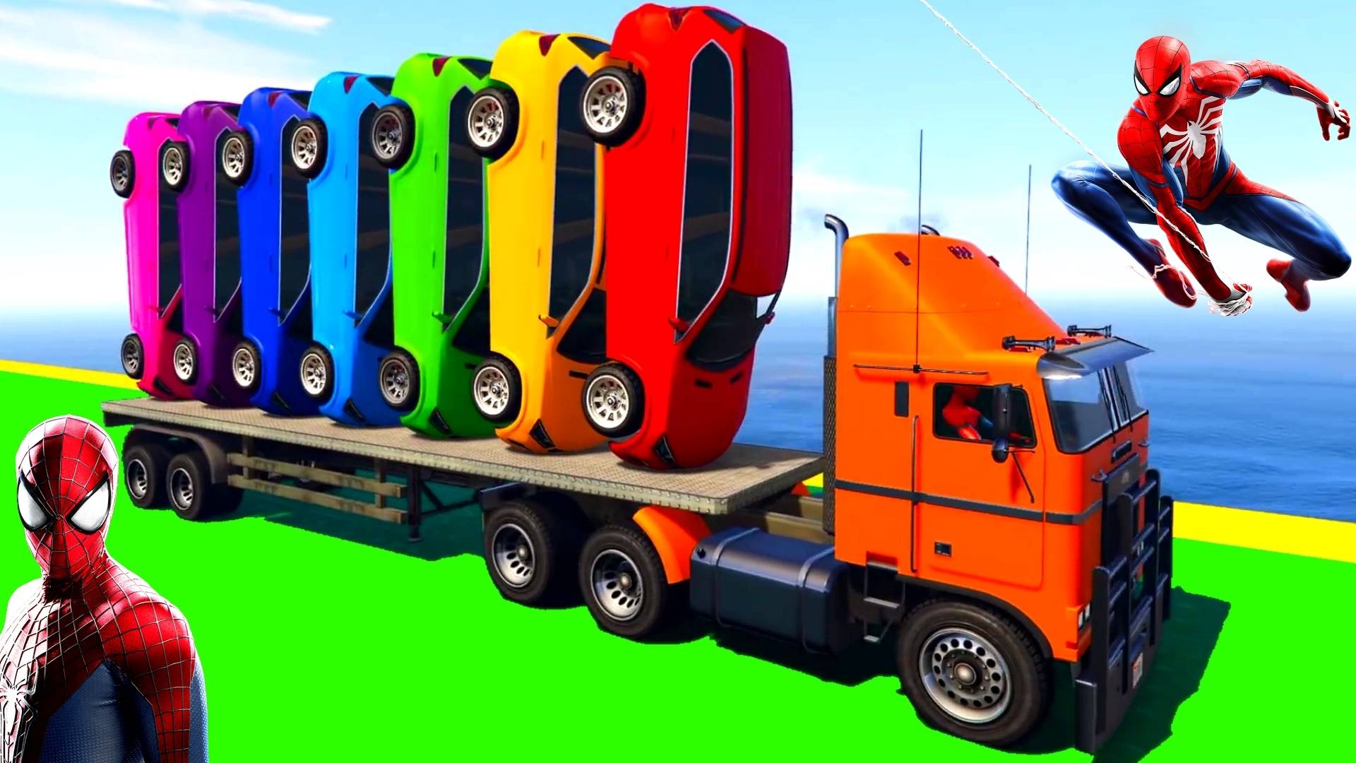 Человек-Паук и Цветные Машинки на Грузовике Мультфильмы про машинки Мультфильмы для детей и малышей