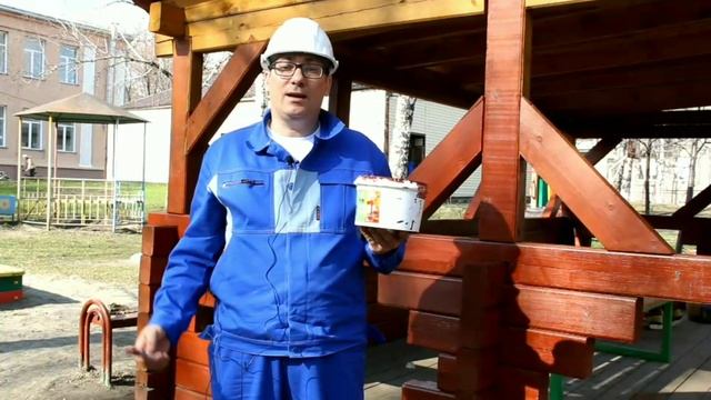 Покраска беседки пропиткой-эмалью для обновления старого дерева. Цвет: красное вино