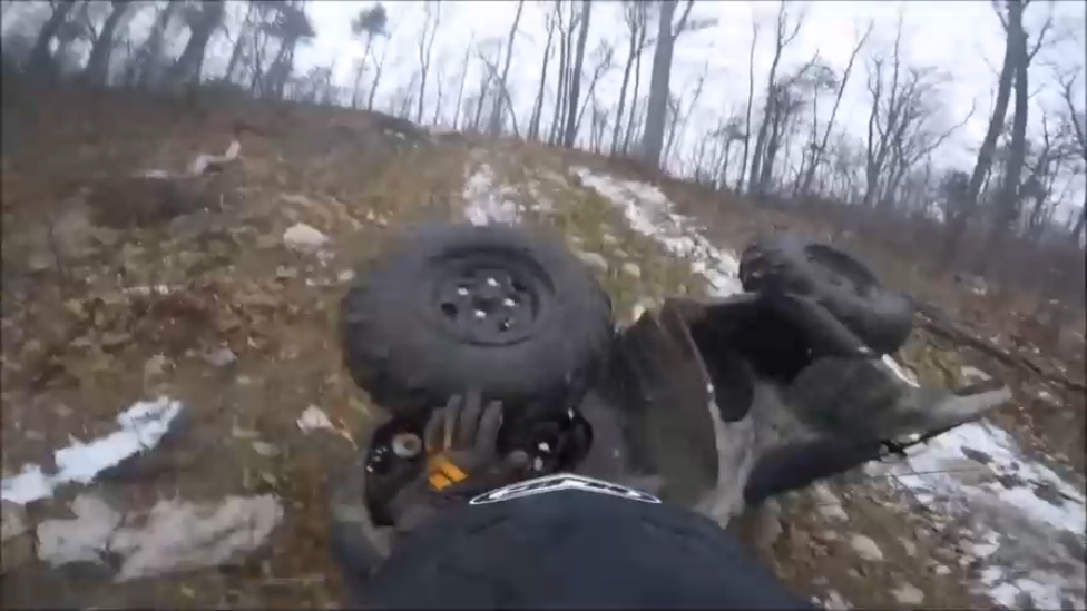 Любитель экстремальных поездок по бездорожью на некоторое время оказался прикован к земле совсем один в лесу собственным транспортным средством, которое перевернулось на него.