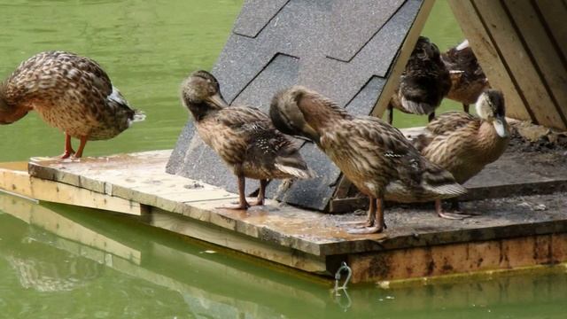 Утята на пруду почти догнали маму-утку в размерах