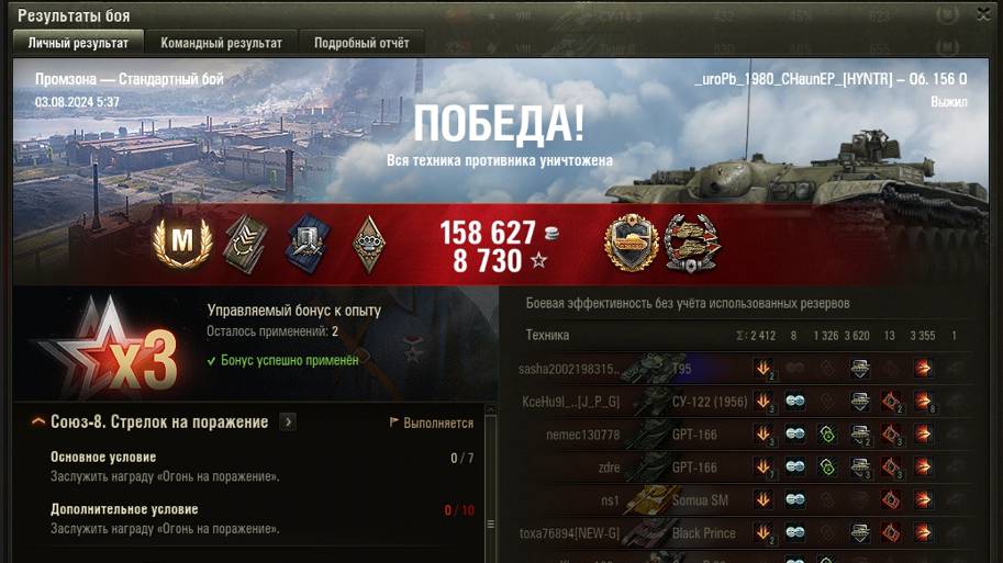 ПРОМЗОНА МАСТЕР на Об. 156 0 ОПЫТ: 1877 СУММАРНЫЙ УРОН: 7093 медаль ПОДДЕРЖКА