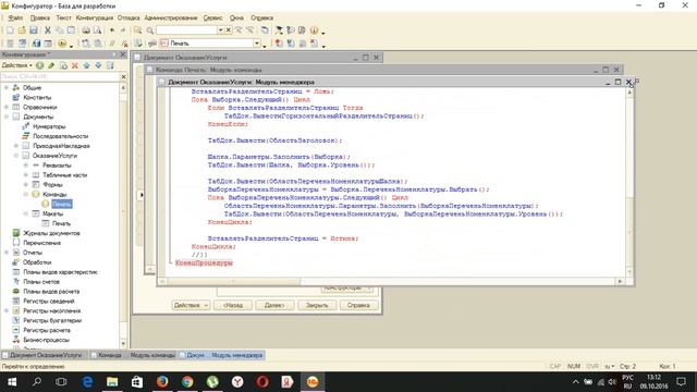 Обучение по созданию макета печатной формы в среде 1С