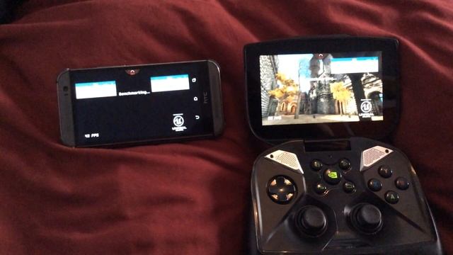 HTC One M8 (Snapdragon 801) V.S. NVIDIA Shield (Tegra 4) on Epic Citadel Mobile Benchmark There's nothing I love more than seeing two of my best and latest high-end gadgets (HTC One M8 & NVIDIA Shield) going head-to-head in an extremely high-detailed mobile graphics benchmark test: Epic Citadel from the Google Play Store. They came pretty close, both of these devices are absolute power-hungry monsters.. but I believe the NVIDIA Shield with it's quad-core Tegra 4 processor toke the win with pure high-performance grunt. Take into account the size differences of these two high-end devices and the native resolutions they're running the benchmark at though. 1080p on the HTC One M8 and 720p on the NVIDIA Shield.. Quite a big difference in rendering. Neither of these devices were using the full power of their quad-core chips (both CPU & GPU) as this benchmark isn't optimised for quad core at all.