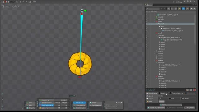 маятниковые движение и свойства наследования кости в Spine 2d