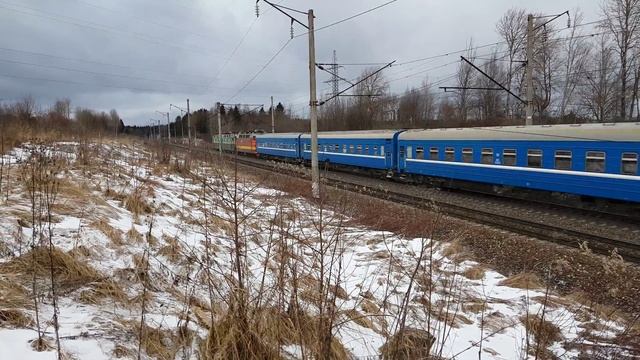 ЧС8-051+ЧС4т-476 с длинным 25-ым поездом Москва-Минск на перегон Вязьма-Семлево