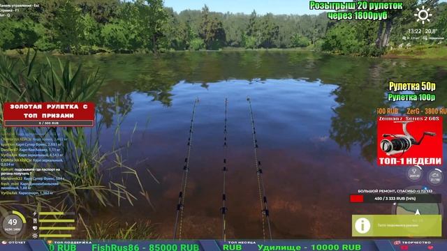 Поддержка донатом https://new.donatepay.ru/@1032463 Альтернативный донат https://www.donationalerts.com/r/kalyamba11 5536913964533059 карта Тинькоф Если стрим лагает,смотри стрим на трово https://trovo.live/s/Kalyamba_na_Ribalke Мой ВК - https://vk.com/kalyantv НИК в игре kalyan11 НАШ ДИСКОРД СЕРВЕР https://discord.gg/EZtvSgwr Заказ водоема на 1 час - 500р ( весь стрим 2500р ) Модерка на канале 1300р ( каждая следующая на 100р больше) ✅Призы в рулетке "ЗОЛОТАЯ" 500р ✔ ЗОЛОТО ✔ ПРЕМ ✔ КАТУШКИ РАПТОР 40, ВЕНГИ, ТАЙГА, СИЛЬВЕР 80, И другие ✔ ПАЛКИ ПИЛКЕРНАЯ, ДОНКА МОРСКИЕ, ✔ РОД ПОД, СТУЛЬЯ ✅Призы в рулетке СТАНДАРТ : 100р ✔ катушкИ РАПТОР 40, ВЕНГИ, ТАЙГА, СИЛЬВЕР 80, И другие ✔ катушки 60 для медного ( ЭВИИ, НАТОРЫ, ГОЛДА, и тд) ✔ ПИЛКЕРНОЕ УДИЛИЩЕ КОРОЛЕВА ОКЕАНА ✔ Морское Донное удилище ✔ прем ( 3, 7, 30 дней) ✔ золото ( 1, 3, 5, 10, 20 ,50) ✔ билет на море ( 1, 3, 5 дней) ✔ голд наживка и др. ✅Призы в рулетке "СТАРТОВАЯ" 50р ✔ катушка Венга ✔ катушка "silver80" ✔ катушка "БЕЛЫЙ КАЛИБР" ✔ катушка "Черный калибр" ✔ катушка "Протон" ✔ катушка "Нарга 6000" ✔ Набор Фидерист и спинингист ✔ Карповик Фортуна ✔ фидерные удилища ✔ прем, золото, алкашка, наживки и тд P.s Рулетка это не казино, а награда за поддержку стримера. Вечный ТОП ПОДДЕРЖКИ (10.06.2025) 1. Леха сварной 214 572 2. Dimon_pokemonchik 127 034 3. Skreb79 103 061 4. Interceptor 96 230 5. FishRus86 82 500