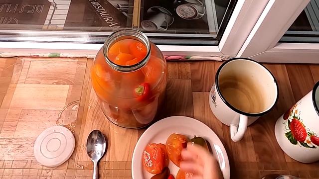 Мои соленые помидоры с перцами в трехлитровой банке