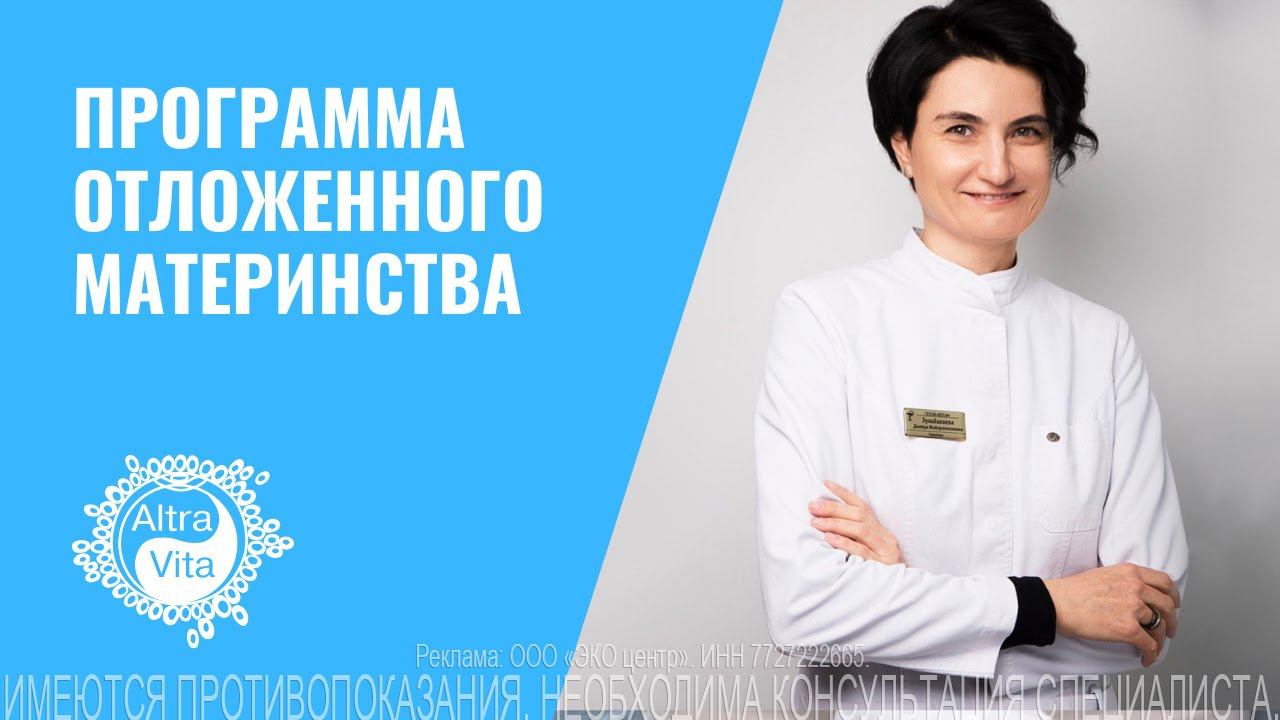 Тему раскрывает врач репродуктолог Зульбалаева Диляра Файзрахмановна. Программа отложенного материнства представляет собой программу ЭКО без этапа переноса эмбриона в полость матки. Этапы программы: - Первичный прием репродуктолога включает беседу с пациентами, сбор анамнеза, осмотр, назначение анализов. - После диагностики врач консультирует повторно, с учетом результатов подбирает схему стимулирования овуляции. - Стимуляция гормоносодержащими препаратами под контролем ультрасонографии. - Получение яйцеклеток посредством пункции яичников под анестезией. - Идентификация, очистка, оценка степени зрелости ооцитов. - Криоконсервация ооцитов. Стоимость программы 116 600 руб. Подробнее о программе: https://clck.ru/rQ9Eo В настоящее время действует акция: первичный бесплатный прием врача репродуктолога. Врачи принимают с 8 до 20 ч без выходных. Записаться на прием можно по номеру: +7 (800) 551-99-01 или по ссылке: https://clck.ru/rQ32Z Подписывайтесь на нас: VK - https://vk.com/altravitaonline Канал в Telegram - https://t.me/altravita Одноклассники - https://ok.ru/altravitaonline Чат поддержки "ЭКО Болталка" - https://t.me/ecochat Дзен: https://dzen.ru/altravita Ставьте лайк и подписывайтесь на канал ⤴. Данное видео не может быть использовано для постановки диагноза, назначения лечения и не заменяет прием врача. ИМЕЮТСЯ ПРОТИВОПОКАЗАНИЯ. НЕОБХОДИМО ПРОКОНСУЛЬТИРОВАТЬСЯ СО СПЕЦИАЛИСТОМ.