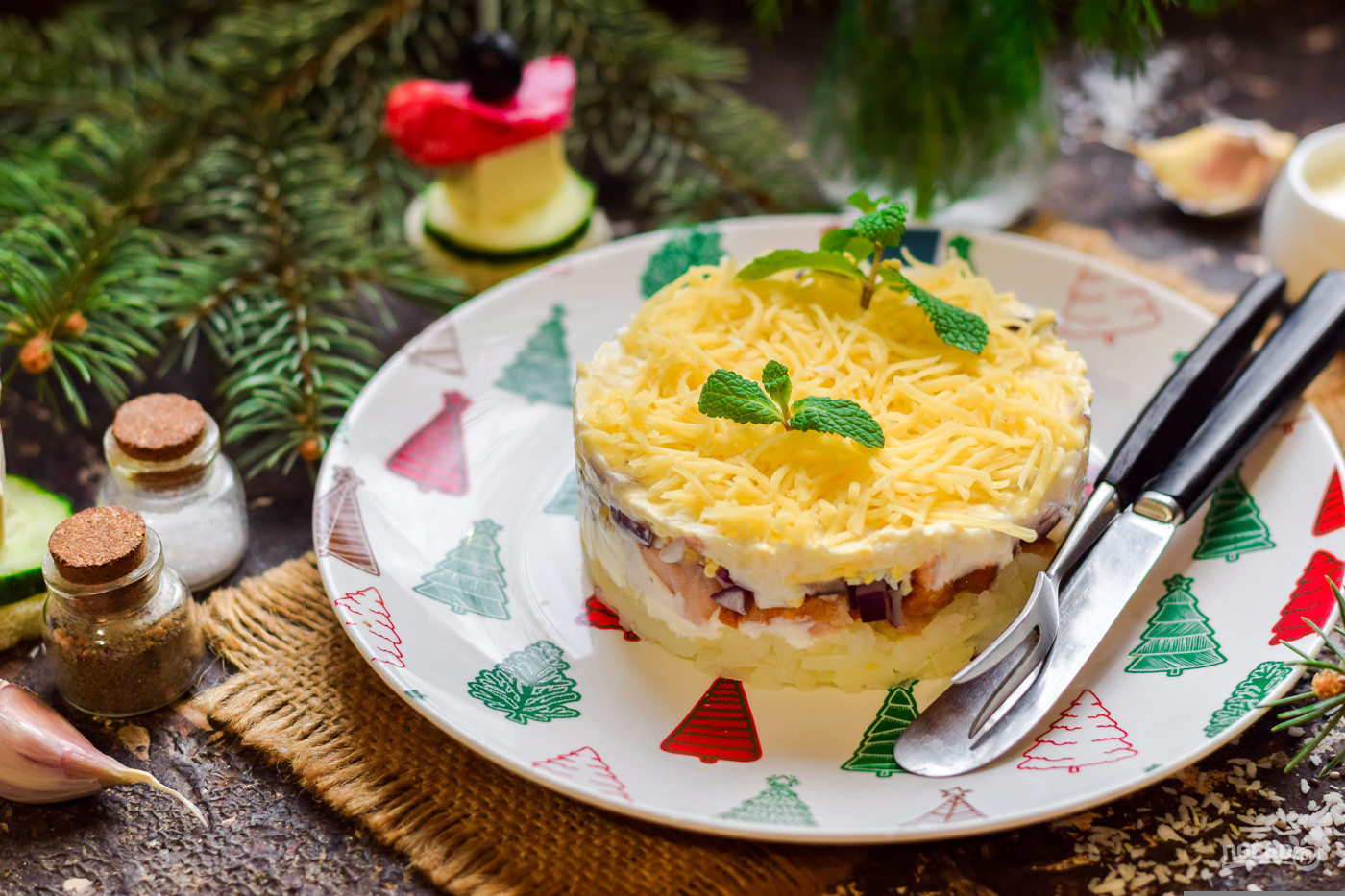 Салат "Рождество" с копченой грудкой