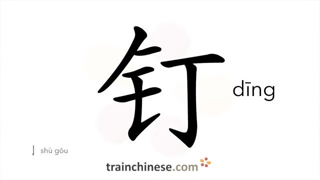 钉 (dīng) nail; tack; spiked; to urge; follow closely; press; tail