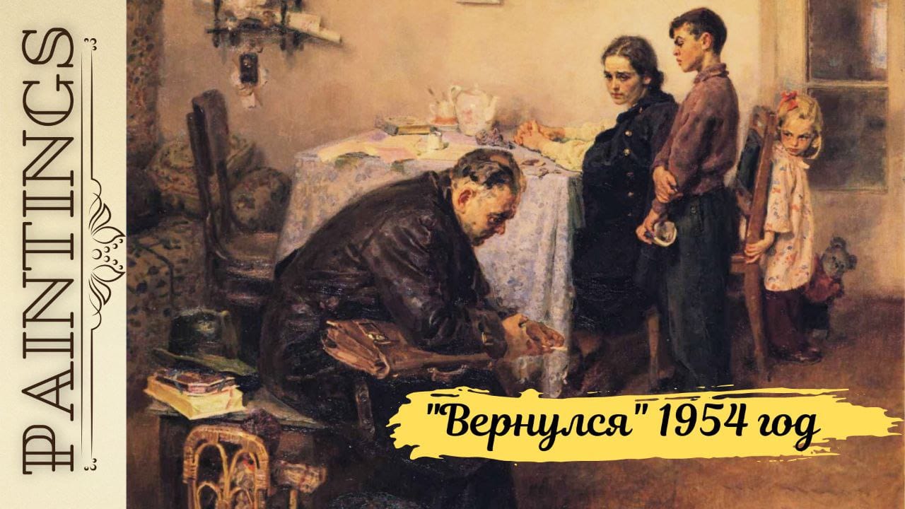 Художник Сергей Алексеевич Григорьев, картина: «Вернулся», 1954 год. #художник #картина #творчество #советскиехудожники #семья #картинамаслом #живопись