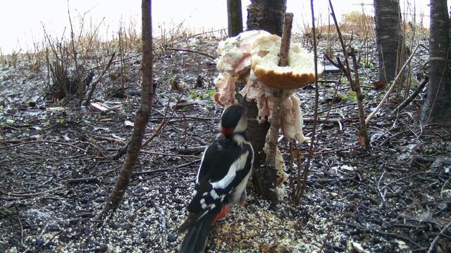 Большой Пестрый Дятел, самец, ест сало, наблюдение птиц, 28 марта, Великий Новгород