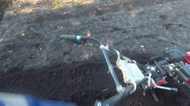 Фрезерую огород мотоблоком фрезами осенью под зиму, неохота пахать. Заодно проделаю проверку фиксатора ручки сцепления для ременного мотоблока. Тест драйв прошел успешно, усовершенствование прижилось. Рекомендую к повторению, мне понравилось.