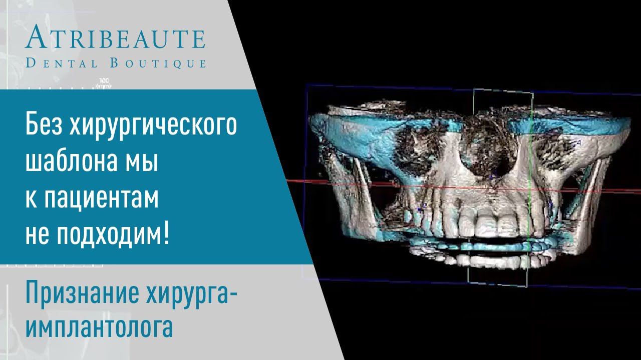 Хирург - имплантолог клиники Atribeaute Dental Boutique Илья Волков рассказывает о том, что к пациентам не подходят без хирургического шаблона. Есть все средства диагностики: — компьютерная томография; — использование диагностических моделей; — использование артикуляторов; — цифровое планирование. Это основа работы, она упрощает работу врача, позволяет в полной мере проинформировать пациента: — как будет выглядеть конечный результат; — с какими трудностями придется столкнуться; — какая работа будет проводиться. Такой подход в работе, дает уверенность врачу, что обещания, данные пациенту, будут выполнены — это путь к успеху.