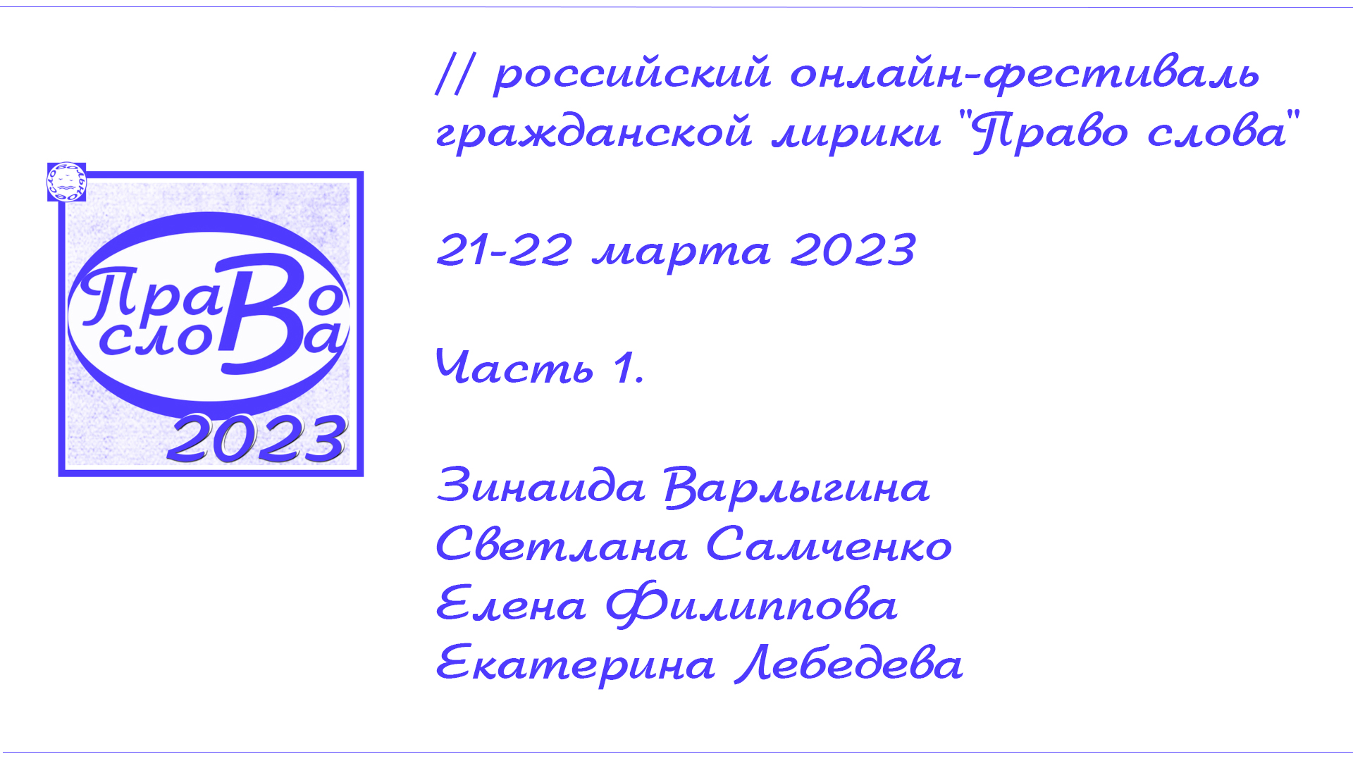 II российский онлайн-фестиваль гражданской лирики "Право слова". 21-22 марта 2023. Часть 1.