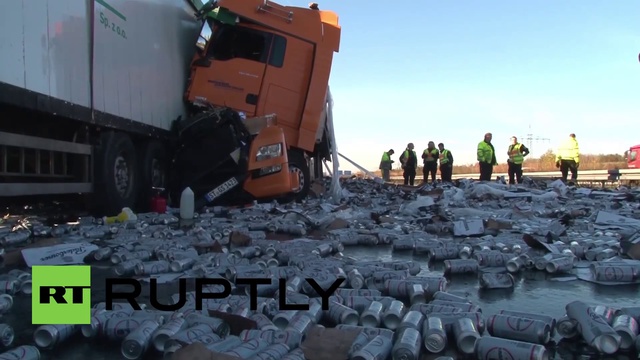 Германия. Фура пива рассыпалась по дороге (04.11.2015 г.)