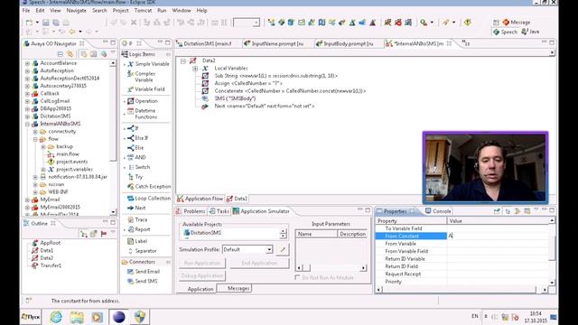 Разработка приложения отсылки внутреннего АОНа по СМС или Email на Avaya Aura Experience Portal