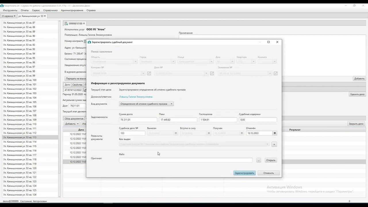 00:24 Расчет ЖКУ: В перечень вкладок по услуге добавлена вкладка "Дома". 00:43 Расчет ЖКУ: Реализована возможность формирования акта и счета, когда оба акта размещаются на одном листе А4. 01:02 Расчет ЖКУ: Добавлена возможность работы с узлами учета Администрирование - Справочники - Узлы учета. 01:59 Расчет ЖКУ: Доработан формат выгрузки данных в органы социальной защиты Архангельской области. 02:06 Обмен данными с ГИС ЖКХ: Для передачи информации об ОДПУ и ИПУ с дистанционным снятием показаний, в сервисе расчета ЖКУ добавлено новое поле "Наименование установленной системы". 02:43 Прием платежей: Добавлена возможность настройки для бюджетных организаций распределения пени на отдельный КБК. 03:04 Сервис по работе с должниками: Все формы заявления теперь отображаются в виде отдельных вкладок. 04:18 Сервис по работе с должниками: Добавление этапов "Сформировать долевой расчет госпошлины" и "Рассчитать госпошлину" объединены в один. 05:03 Сервис по работе с должниками: Переименовано окно "Расчет госпошлины" в "Расчет госпошлины для заявления". 05:12 Сервис по работе с должниками: При выборе формы заявления "Исковое заявление" отображается новый параметр "Оплачена ранее для приказа". 05:40 Сервис по работе с должниками: Реализован переход к исковому заявлению после вынесения определения об отмене судебного приказа. 07:03 Сервис по работе с должниками: Для шаблона искового заявления реализованы новые хештеги. 07:46 Сервис по работе с должниками: В выписке из Росреестра в печатной версии стала отображаться дата запроса. 08:05 Сервис по работе с должниками: При наличии актуальной выписки дело больше не дробится на два, если контракт подготовлен к закрытию. 08:31 Сервис по работе с должниками: Во всех форматах шаблонов теперь считывается таблица с текстом и хештегами внутри нее. 08:46 Сервис по работе с должниками: Исправлена ошибка в создании дубликатов исполнителей услуг и адресов.
