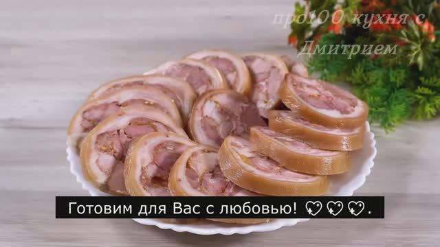 Привет друзья!Добро пожаловать на наш канал! Рецепт приготовления и ингредиенты: 1,2 кг свиной рульки. удалить кости. Срезать мясо с кожи. Нарежьте мясо полосками. Накрыть пищевой пленкой. Слегка отбить мясо. 15 г поваренной соли. 10 г нитритной соли. Черный перец. Сухой чеснок. Розмари. 1 чайная ложка аджики. 1 чайная ложка зерновой горчицы. Хорошо перемешать. Выложить кожу, накрыть пищевой пленкой и слегка отбить молотком. Оставшуюся соль высыпьте на кожу и разотрите по всей поверхности. Накройте пищевой пленкой и поставьте в холодильник на ночь. Поместите кожу на пищевую пленку. Равномерно уложите мясо на кожу. 100 г сырокопченого бекона. Свернуть в рулет. Плотно завернуть пищевой пленкой. Завяжите ниткой. Накрыть крышкой и варить на медленном огне 3 часа. Остудить через 3 часа и поставить в холодильник на 12 часов. Удалите нить и пищевую пленку. Посмотрите, какая замечательная мясная закуска у нас получилась! Напишите, пожалуйста, ваше мнение о рецепте. Я буду очень счастлив. Друзья, подписывайтесь на мой канал, чтобы не пропустить новые рецепты. Спасибо за просмотр, лайк и подписку. До встречи в моих новых рецептах! Приятного аппетита!Друзья, если вам понравился рецепт,дайте знать в комментариях, подписывайтесь и ставьте лайк ?.Готовим для Вас с любовью! ???.