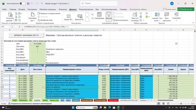 Master Budget в.1.2 новая функция загрузки данных из 1С и СРМ