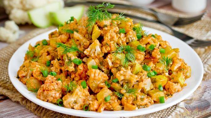 В нежном соусе. КАБАЧКИ, ТУШЕННЫЕ С ЦВЕТНОЙ КАПУСТОЙ