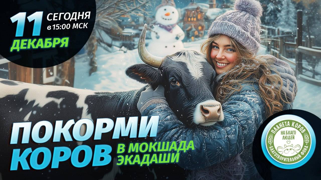 Кормление коров онлайн 11 декабря 2024 г. в день Мокшада Экадаши, Планета коров
