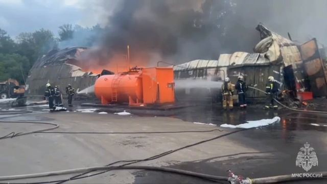 Место пожара - город Санкт-Петербург, улица Витебская Сортировочная 40, 01.07.2025г. Горит ремонтный ангар. Пострадавших и погибших нет.