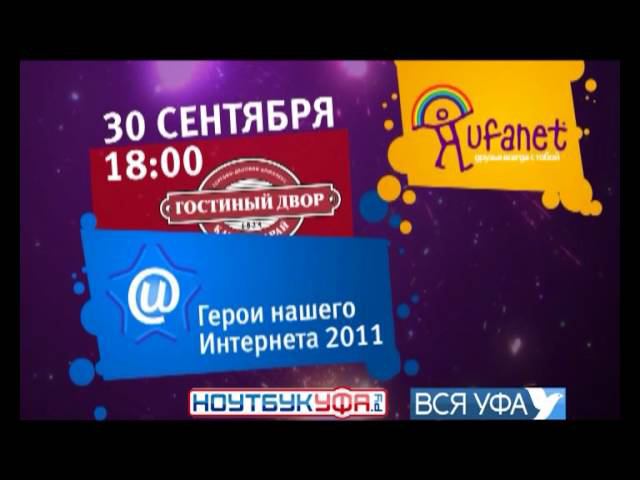30 сентября в Гостином Дворе Администрация городского округа г. Уфа и компания «Уфанет» проводит церемонию награждения премией «Герои нашего интернета». Второй год подряд в День Интернета люди, изменившие свою жизнь и жизнь окружающих при помощи Интернета, получают признание уфимского Интернет-сообщества и обычных уфимцев.