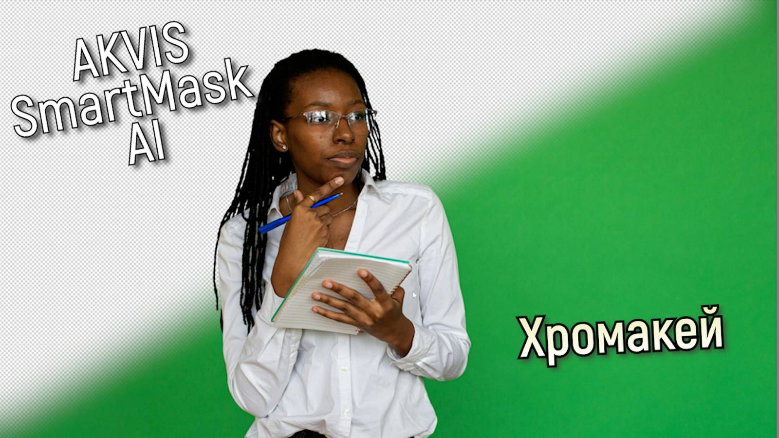 Хромакей — технология совмещения двух и более изображений или кадров в одной композиции, использующаяся на телевидении и в кинопроизводстве. Во время съёмок объект находится на однотонном цветном фоне, как правило, зеленом или синем. При монтаже цветной фон удаляется, а вместо него помещается другое изображение. В программе AKVIS SmartMask AI функция Хромакей позволяет быстро и аккуратно удалить однотонный цветной фон. https://akvis.com/ru/smartmask-tutorial/make-selection/chroma-key.php