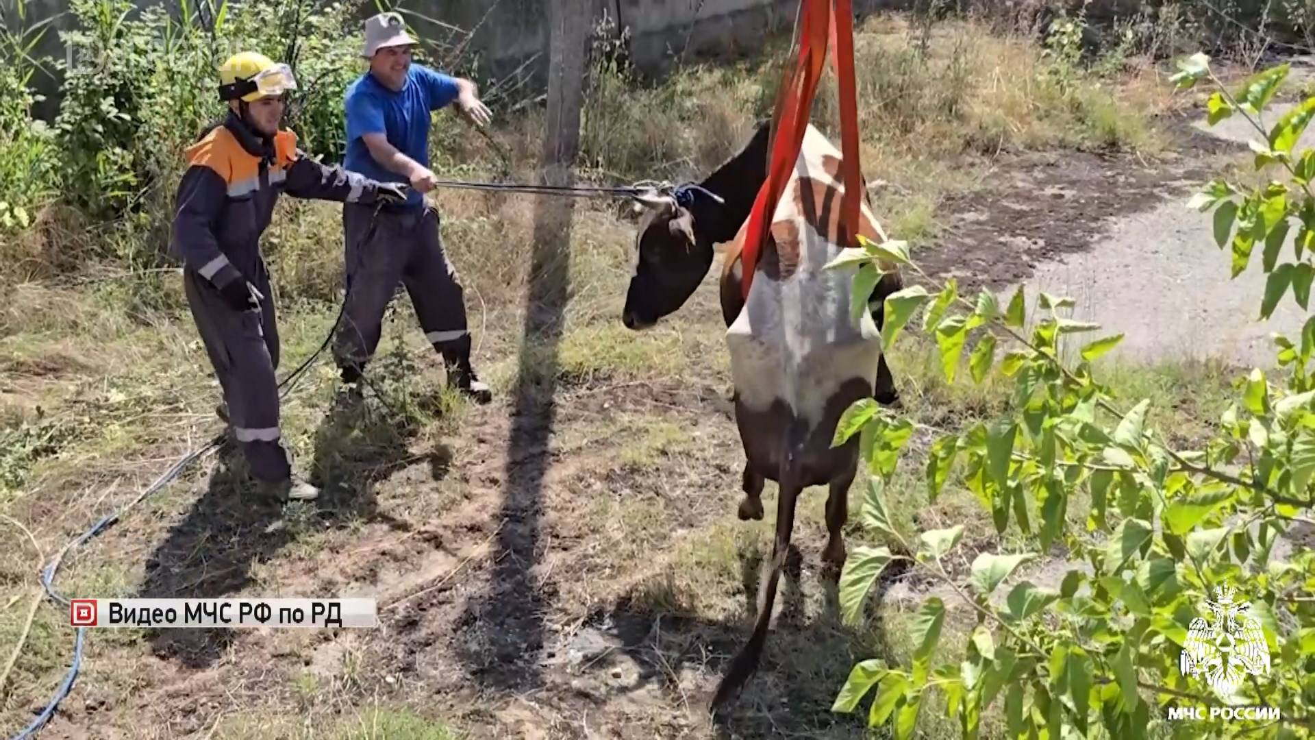 Настоящую спасательную операцию развернули в Дагестане. В пятиметровый резервуар для забора воды упала корова. Чтобы спасти животное, пришлось применить альпинистское сооружение и подъемный кран. Операция прошла успешно – корову вытащили и отпустили на волю.