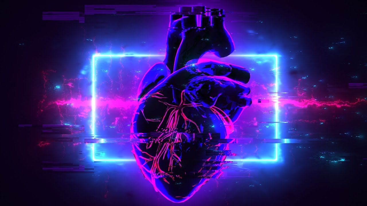 Анимированный темный абстрактный фон в стиле киберпанк: Сердце