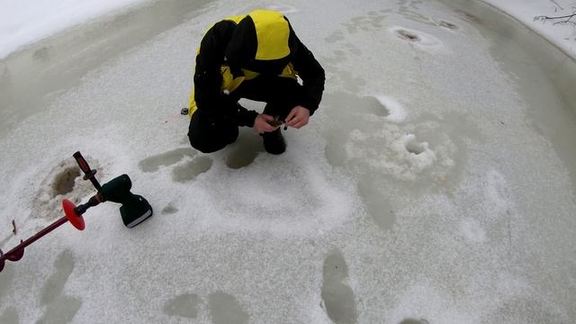 Всем привет.Наступило календарное глухозимье.После нескольких дней дождя и без того тонкий лед начал разваливаться.Но нас не остановить.Пробежались с Сашей по ямам,на парочке неплохо поклевало,максимум 300гр.