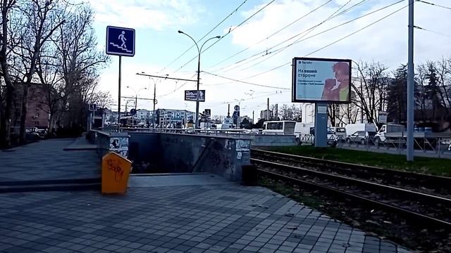 6 декабря 2021г Гуляю по городу,смотрю с моста ул.Офицерской на пути от вокзала Краснодар2, ,трамваи, мурал "Девушка с подсолнухами" на стене , музыкант в переходе .