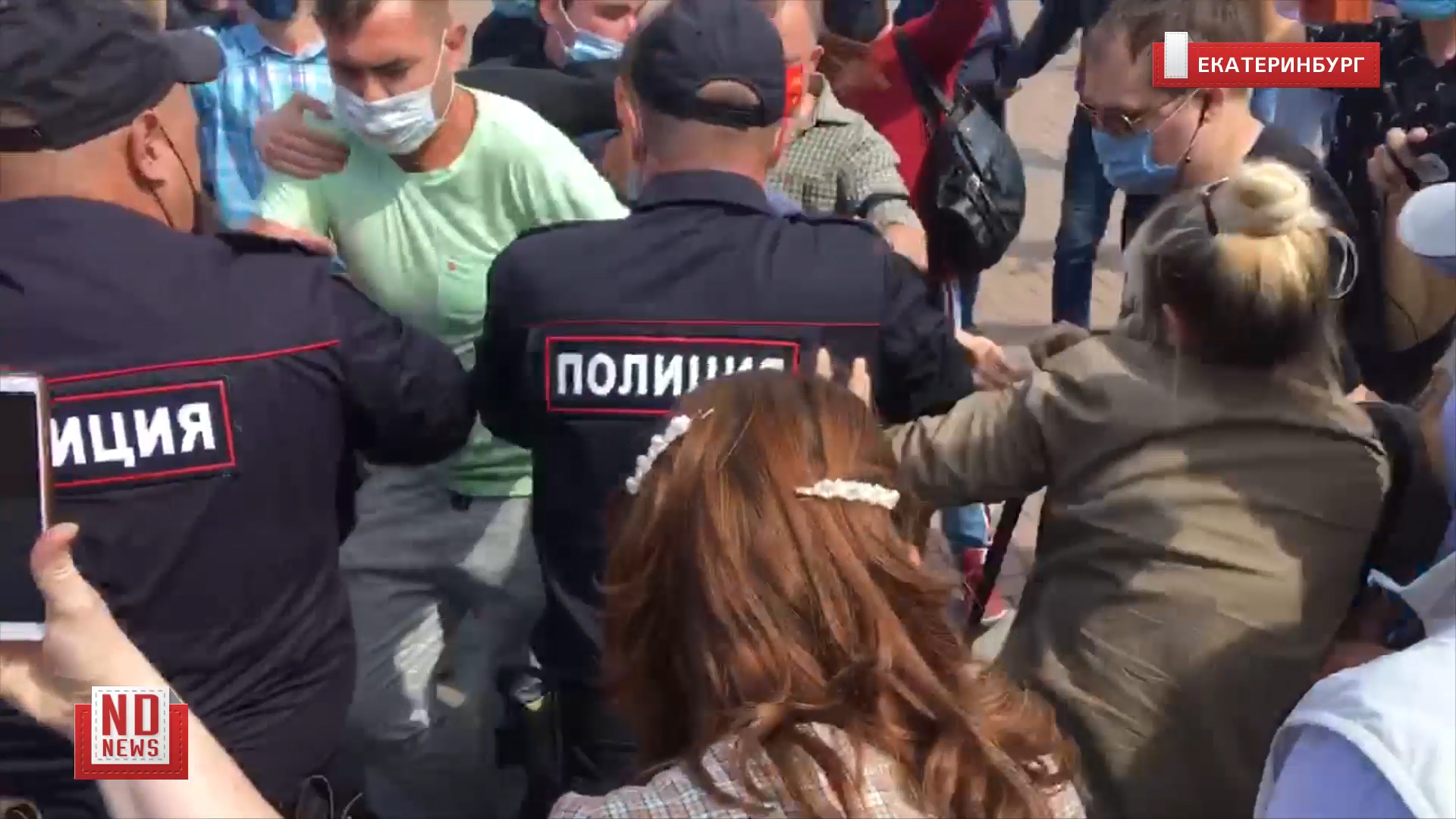 1 августа 2020 года. В Екатеринбурге люди пришли на акцию к театру драмы поддержать протест в Хабаровске. Полиция задержала одного из пришедших мужчин. Толпа пыталась его отбить. Подробнее – https://newdaynews.ru/ekaterinburg/699016.html
