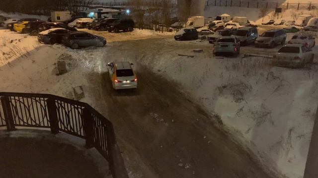 Друзья! Сейчас мы увидим, как машина из сети "Каршеринга" преодолевает препятствие из снега и льда в виде горки.