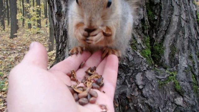 Кормлю того самого бельчонка, который выжил