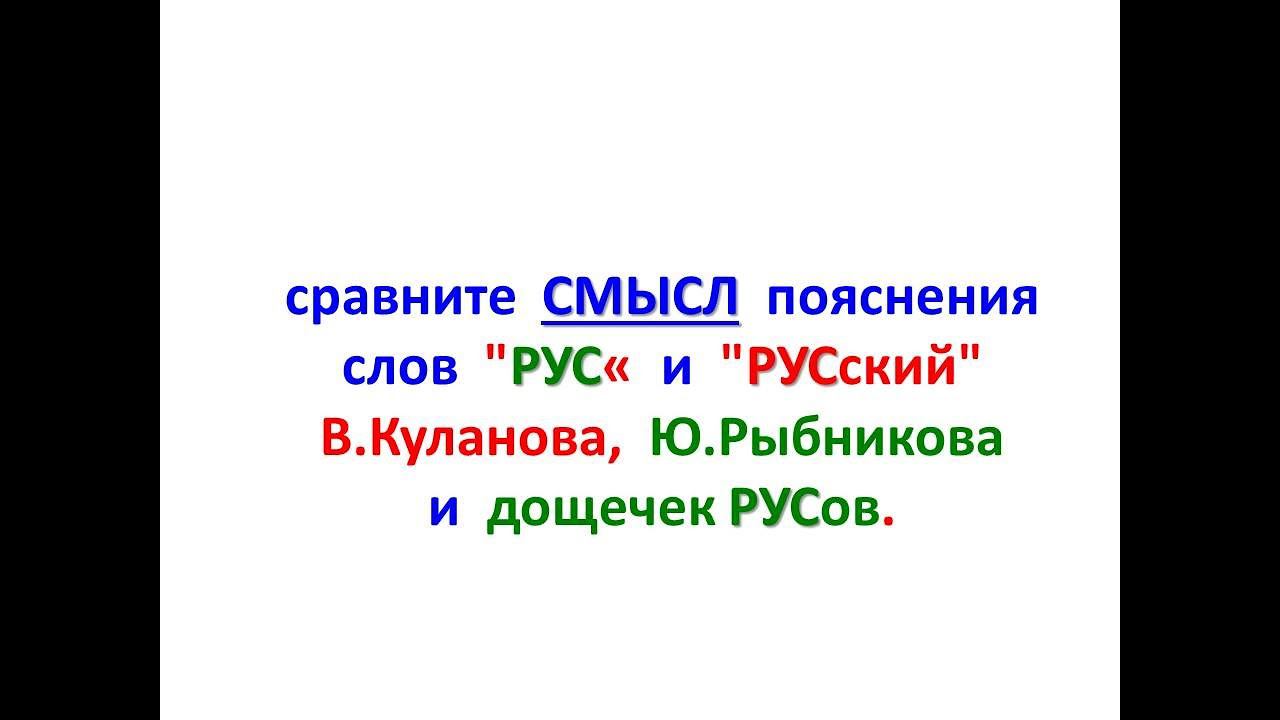сравните СМЫСЛ пояснения слов "РУС" и "РУСский" В.Куланова, Ю.Рыбникова и дощечек РУСов.