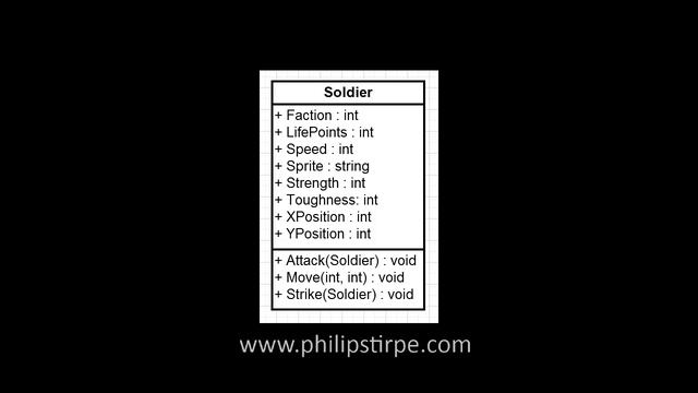 In this video, I show how we can write a class in C# to represent a Soldier using my Age of Empires analogy. Transcript: http://www.philipstirpe.co.uk/2012/10/this-is-third-in-series-of-posts-where.html Phil Stirpé "I don't do average!" http://www.philipstirpe.co.uk/ http://qa.com/about-qa/blogs/phil-stirpe/ http://its-not-good-enough.blogspot.co.uk/ http://www.youtube.com/user/philipstirpe/videos