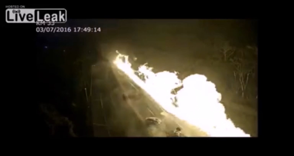 В Бразилии грузовик, перевозивший этанол, перевернулся на трассе из-за технической неисправности тормозной системы.