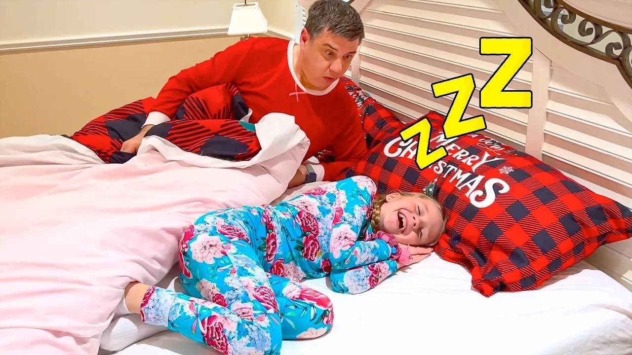 Папа учит Настю спать в своей кровати