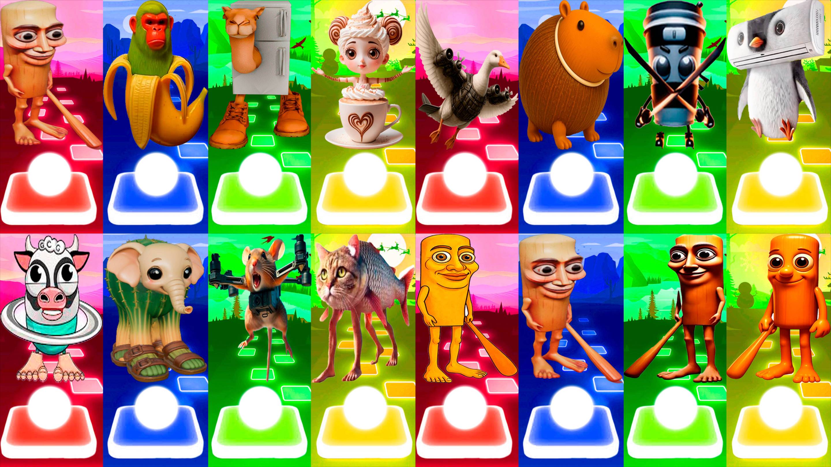 МЕГАМИКС ТУН ТУН ТУН САХУР 🆚 ШИМПАНЗИНИ БАНАНИНИ 🆚 ДРУГИЕ БРЕЙНРОТ МЕМЫ | Tiles Hop №45-48