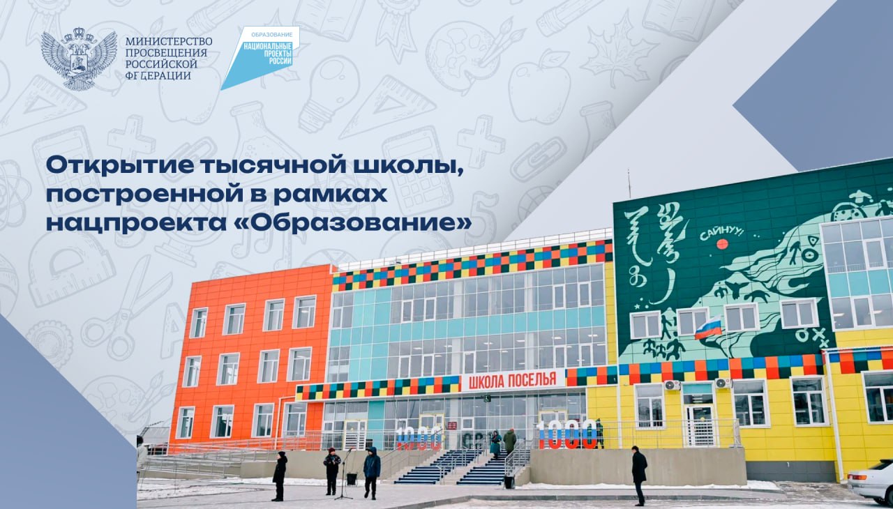 Тысячная школа, построенная в рамках национального проекта «Образование», открылась в с. Поселье Иволгинского района Республики Бурятия. Учреждение рассчитано на 250 мест. С площадки выставки «Россия» на ВДНХ к торжественной церемонии открытия подключились вице-премьер Татьяна Голикова и министр просвещения Сергей Кравцов. Смотрите самые яркие кадры с открытия в нашем видеоролике.
