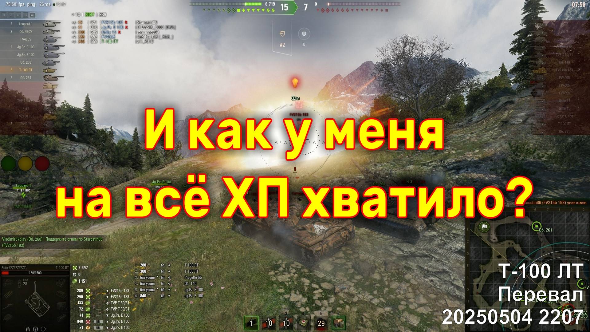 И как у меня на всё ХП хватило? Т-100 ЛТ. Перевал. 20250504 2207.