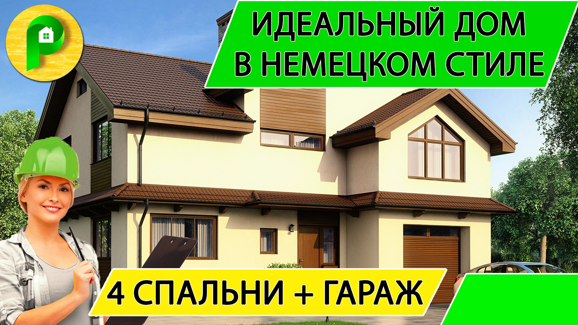 Проект загородного дома в немецком стиле из пеноблока 12 на 13, 4 спальни Ремстройсервис М 205