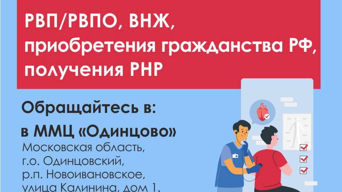 Утвержден новый перечень медицинских организаций, уполномоченных на проведение медицинских освидетельствований иностранных граждан на территории Московской области Опубликовано Постановление Правительства Московской области от 04.09.2025 № 1141-ПП об утверждении перечней медицинских организаций, уполномоченных на проведение медицинских освидетельствований иностранных граждан. Теперь с 15 сентября 2025г. иностранные граждане, в том числе граждане стран ЕАЭС, прибывшие для осуществления трудовой деятельности медицинское освидетельствование проходят на территории ГБУ «Миграционный центр» г. Москвы (ММЦ «Сахарово»). Для прохождения медицинского освидетельствования иностранными гражданами, прибывшими на срок, превышающий 90 календарных дней в целях, не связанных с осуществлением трудовой деятельности, определены 18 медицинских учреждений. Как и прежде для получения РВП, ВНЖ, а также для приобретения гражданства РФ медицинское освидетельствование проводится в ММЦ «Подольск» и ММЦ «Одинцово».