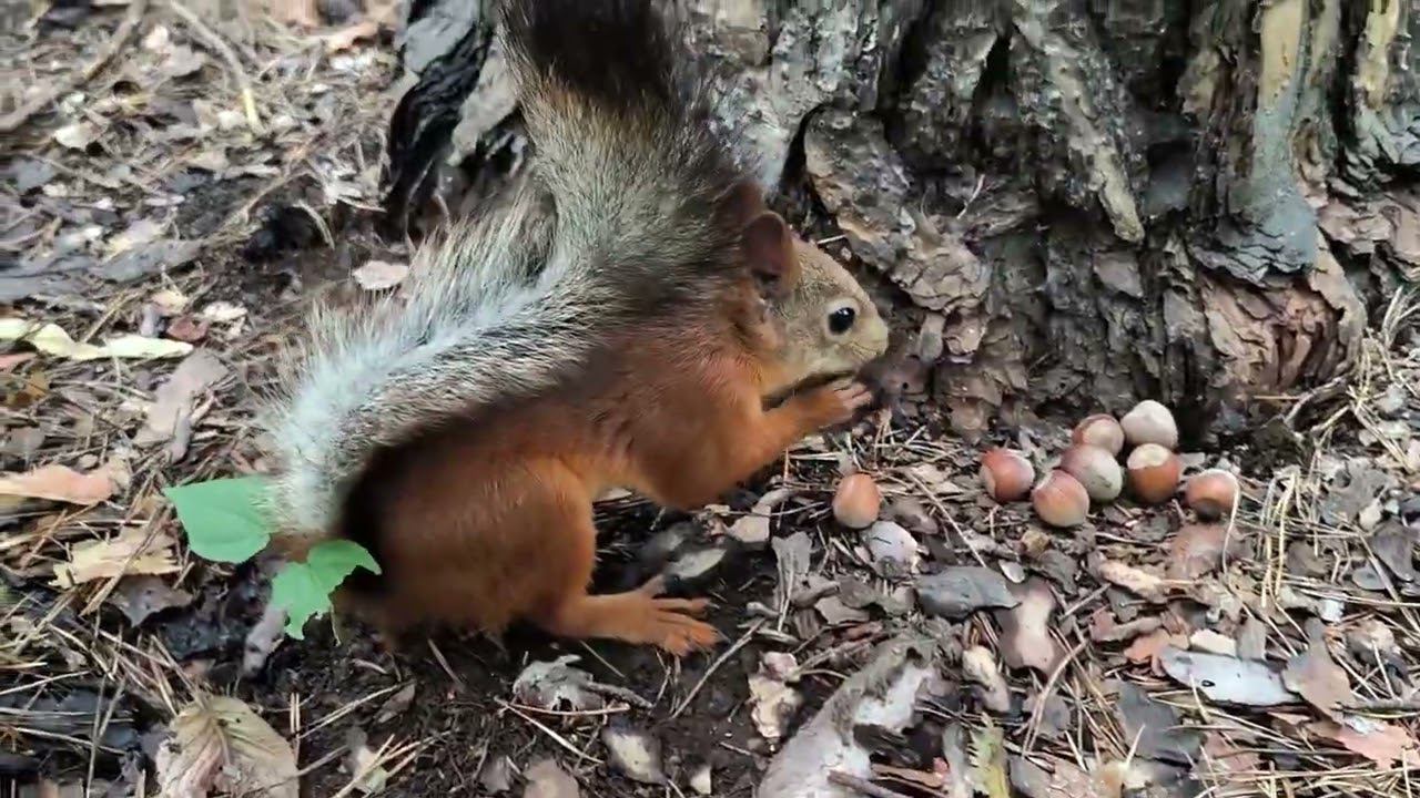 Белка прячет орехи