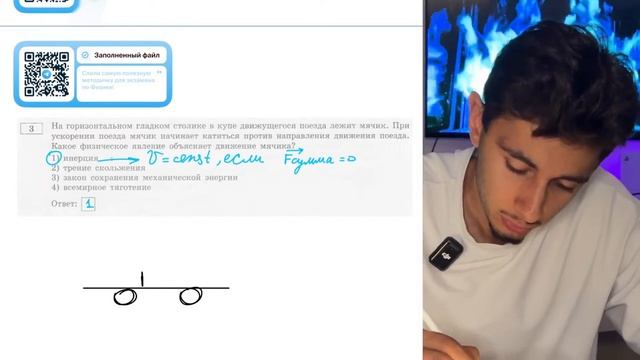 На горизонтальном гладком столике в купе движущегося поезда лежит мячик. При ускорении - №20399