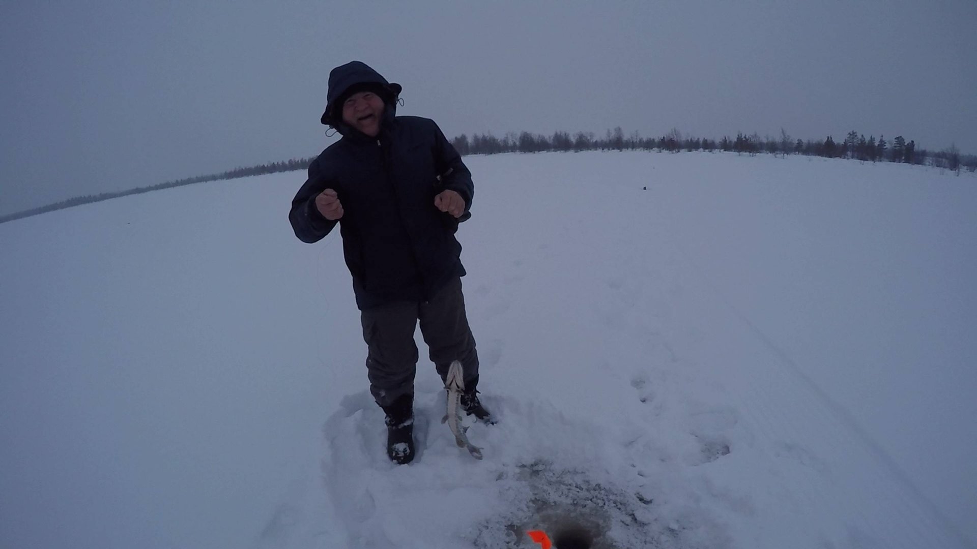 Окунь на мормышку, щука на жерлицы на одном из озёр ЯНАО